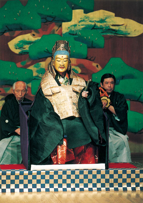 命を助けられた恩返しに僧の望みを叶えると言って現れた山伏姿の天狗。僧は、霊鷲山(りょうじゅせん)で釈迦が説法したようす(=大会)を見たいと望む。天狗は「決して信心をおこさぬこと」を条件に、僧の望みを叶えるのだが、僧が思わず信心を起こして合掌してしまうと、仏法を護る帝釈天が現れて…というのが能〈大会〉である。秀吉は、〈源氏供養〉〈井筒〉〈杜若〉など優雅な能を好む一方で、〈皇帝〉〈大会〉のようなスペクタクルある、視覚的にも楽しめる能も好んで演じている。禁中での能・狂言の会を含め、秀吉は〈大会〉を六度演じているが、人を驚かせたい、喜ばせたいという、秀吉のエンターテイナー的な性分が垣間見える。