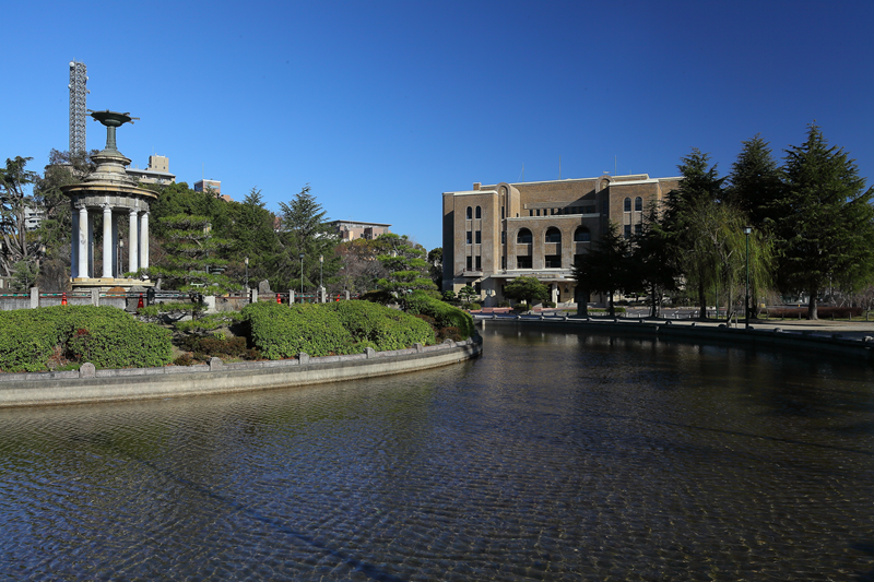 鶴舞公園噴水塔と公会堂